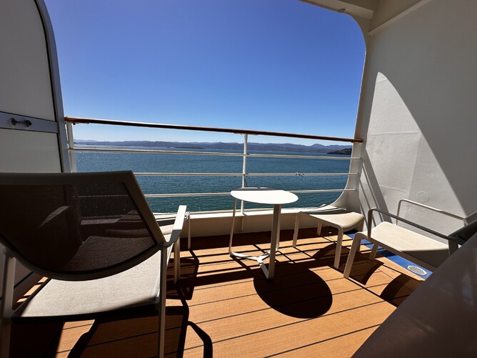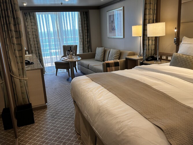 Sadly we were unable to see a Silver Suite as they were booked out. These have a seperate bedroom so you can entertain guests in a small lounge area, a long wide balcony and seperate toilet / shower.