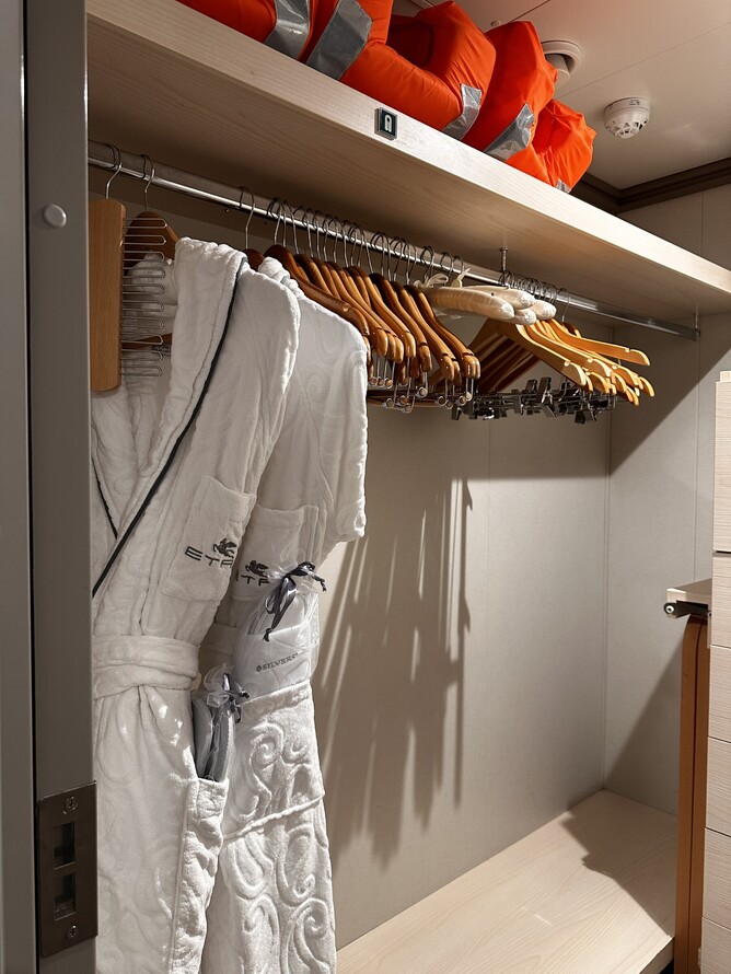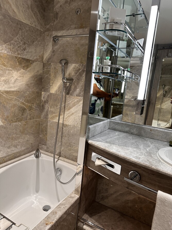 All Verandah Staterooms are similar with just the location being the deciding factor to it being a Deluxe or Superior. There are a shower and bath in some with fabulous Bvlgari products to enjoy. The wardrobe is spacious for you to be able to unpack everything and stack the suitcase away until the last night.