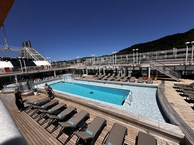 with enough deckchairs for all the passengers, there is no need here to 'reserve' one with your book or towel. The pool is a good size to get a few laps in to work the delicious food away. The restaurants serve world class dishes for any foodie. Silver Note being the only restaurant requiring a booking due to its size, so get in quick for yourself.